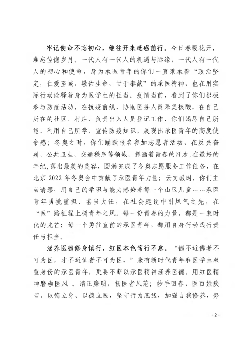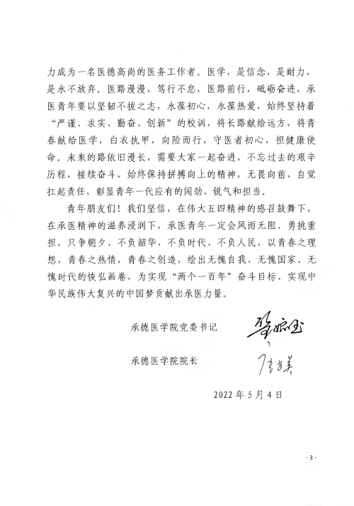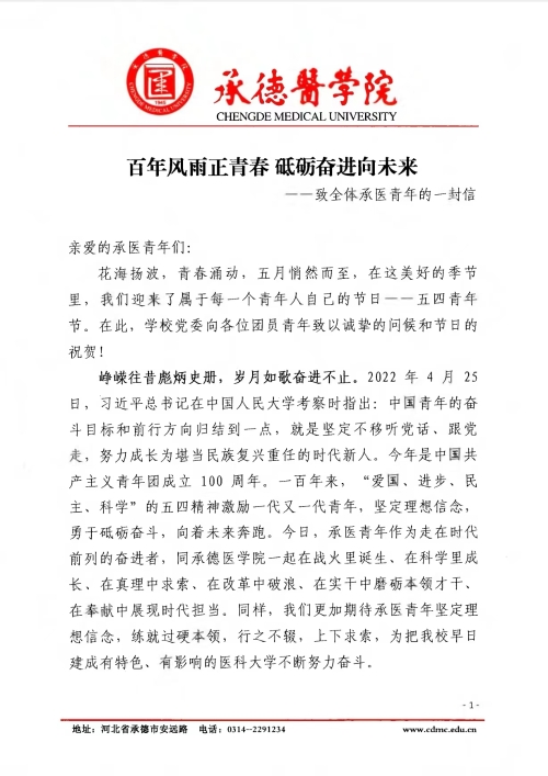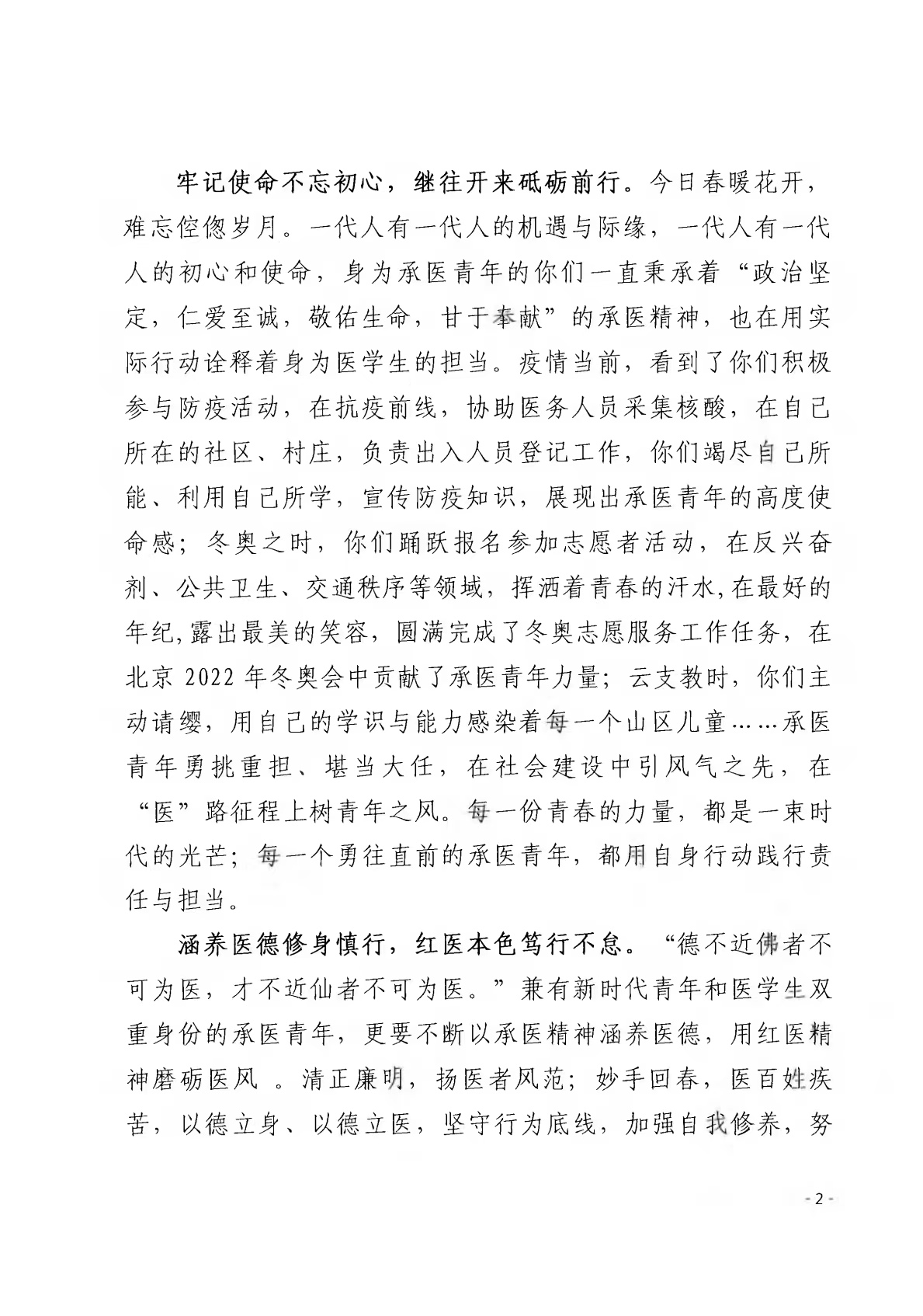 百年风雨正青春 砥砺奋进向未来一一致全体承医青年的一封信