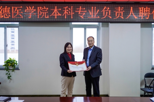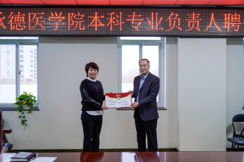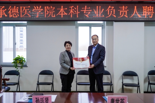为进一步加强本科专业建设与管理,完善教学工作责任体系,发挥专业负责人的引领作用,提升本科专业建设水平,2023年12月14日,学校在行政楼312会议室举行本科专业负责人聘任仪式。学校党委副书记、校长唐世英,党委常委、副校长李玉红,党委常委、副校长、附属医院院长孙𬍛贤出席仪式,全体本科专业负责人、各教学单位负责人、各教学单位主管教学负责人及学校相关职能部门负责人参加仪式。聘任仪式由李玉红主持。 聘任仪式上,李玉红宣读学校本科专业负责人聘任名单,唐世英分别为专业负责人颁发聘书并表示祝贺。 (点击每张照片即可查看原图) 学校党委副书记、校长唐世英为受聘的本科专业负责人颁发聘书 聘任仪式合影 李玉红作总结发言。她指出,专业建设是人才培养的基础工程,是学校发展建设的重点工作。本科专业建设的水平直接影响人才培养质量和学校办学水平。希望每一位专业负责人都能深刻认识到自己的责任和使命,按照《承德医学院本科专业负责人管理办法(试行)》的要求,认真履行岗位职责,以更加饱满的热情和更加扎实的工作作风,进一步起到引领专业发展、拓展专业内涵、制定专业发展规划、树立专业品牌等作用,不断规范专业建设工作,持续提高各专业的人才培养质量,推动学校教育事业的发展。