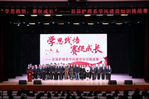 为夯实护理学子的专业基础,搭建跨年级学术交流平台,营造勤学善思的优良学风,展现护理系学生锐意进取的精神风貌,11月7日,“学思践悟 赛促成长”首届护理系学风建设知识挑战赛在学校礼堂顺利举行。全系师生齐聚一堂,以竞赛促进学习,以交流增进友谊,共同开启一场知识与智慧的较量。 本次活动面向护理系全体在校学生,采取“现场笔试+观众互动答题”相结合的形式,全过程坚持公平、公正、公开的原则。 笔试环节,各年级辅导员依据学号随机抽取参赛学生。被抽选的同学在指定区域就座,作答对应年级的专业试卷。答题过程中,同学们认真思考、从容作答,展现出扎实的知识积累与严谨的学风。笔试进行期间,现场同步开展了互动抢答环节。主持人围绕护理学专业知识进行提问,台下学生踊跃参与、积极应答。回答正确的同学获得精美礼品,现场气氛活跃,掌声不断。 互动问答环节 活动最后,护理系党委副书记朱炎杰作总结讲话,他充分肯定了本次活动的组织与成效,并对护理系学子提出殷切期望,勉励大家在专业道路上不断探索、追求卓越。 此次知识挑战赛不仅为学生提供了检验当下学业水平、交流学习经验的平台,更有力激发了广大同学的学习热情。未来,护理系学子将以本次活动为契机,继续弘扬勤学善思、笃行不怠的优良作风,在专业学习的道路上矢志前行,不断提升自身的专业素养和综合能力。同时,护理系也将持续开展各类丰富多彩的学风建设活动,营造更加浓厚的学习氛围,为培养更多优秀的护理人才而不懈努力。 活动合影 作者:护理系 赵芯(单位审核:王阳) 编辑:党委宣传统战部 张喜子 审核:党委宣传统战部 周文娟 | ||||||||