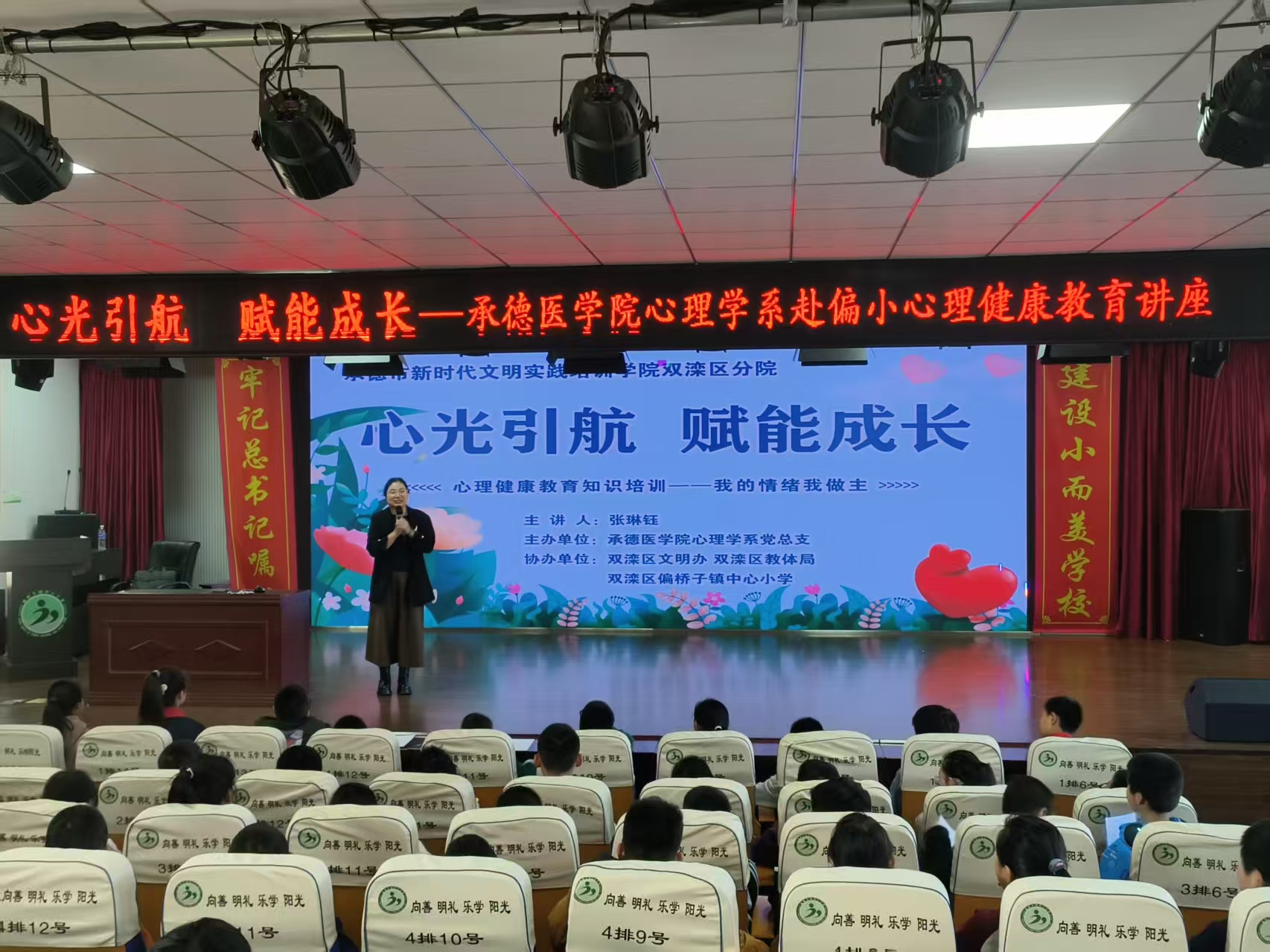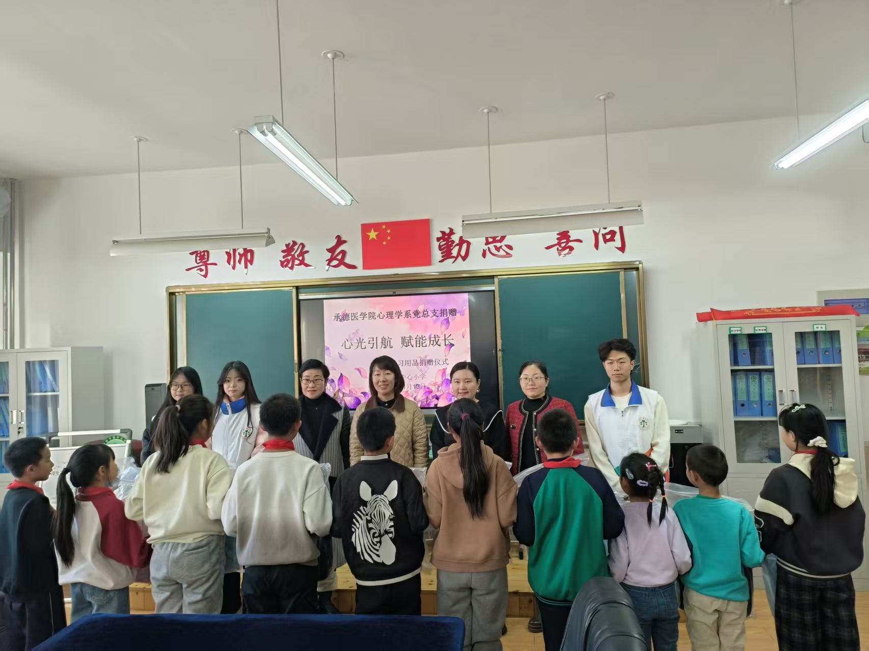 为切实帮助受灾学生缓解心理压力,恢复正常学习生活,心理学系党总支赴双滦区偏桥子镇中心小学开展爱心捐赠暨“心光引航 赋能成长”心理健康教育知识讲座。此次活动依托承德市新时代文明实践培训学院双滦区分院,由承德医学院心理学系主办,双滦区文明办、双滦区教体局承办。 活动在温馨的捐赠仪式中拉开序幕。心理学系为该校受洪涝灾害影响严重的学生准备了书包、文具等学习用品。心理学系书记丁宁在捐赠仪式上勉励受灾学生勇敢面对困难,保持积极乐观的心态,努力学习,将来成为国家的栋梁之材,用自己的力量去帮助更多需要帮助的人。她表示,承医心理学系将持续关注学生们的成长需求,为大家的学习生活提供有力支持。 捐赠仪式 偏桥子镇中心小学副校长李亚娟代表学校对承医心理学系的爱心义举表示衷心感谢。李校长表示,此次捐赠活动和心理辅导课程充分体现了承医心理学系师生对基础教育事业的关心与支持,必将帮助孩子们重建心灵家园,迎接美好的未来。 随后,心理学系教师张琳钰为四、五、六年级学生开展了“情绪管理与心理调适”专题讲座。通过情景模拟、互动体验等形式,张老师深入而系统地讲解了情绪识别、压力应对等心理健康知识。学生们积极参与互动,在轻松愉快的氛围中掌握了心理调适的基本方法。讲座结束后,活动进入抽奖环节,通过随机抽取号码的方式,向学生们发放文具等精美礼品,进一步增进了师生间的情感交流。 张琳钰老师做心理健康讲座 此次活动通过爱心捐赠与心理关怀相结合的方式,为受灾学生提供了物质与精神支持。下一步,心理学系将深入落实健康第一教育理念,利用心理学专业优势,深化高校与社会的支持服务和交流合作,营造全社会关心学生心理健康的良好氛围,为未成年人心理健康成长保驾护航。 作者:心理学系 王爽(单位审核:丁宁) 编辑:党委宣传统战部 张喜子 审核:党委宣传统战部 周文娟 | ||||||||