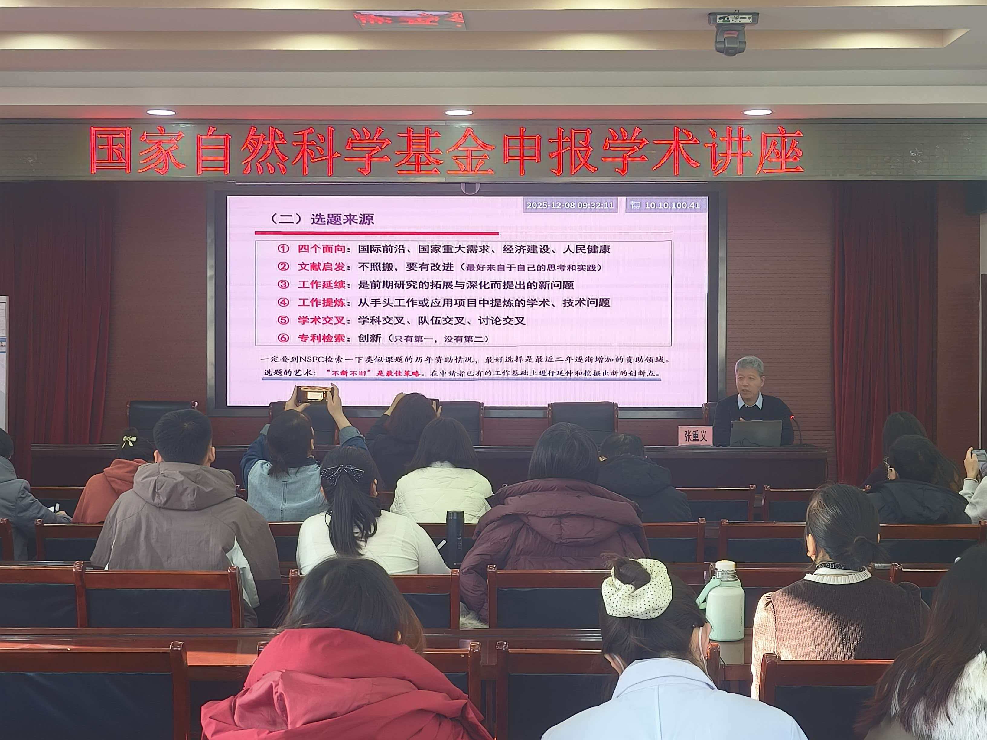 为做好2026年度国家自然科学基金项目的申报工作,提高申请质量,中药研究所联合科技处于12月8日特邀福建农林大学蜂学与生物医药学院张重义教授来校,开展国家自然科学基金项目申报专题辅导讲座。近五年新入职博士及拟申报2026年度自然基金的教师参加了本次讲座。 讲座以《国家自然科学基金项目申报书设计与撰写建议》为题,张重义教授从申报意义、选题策略、撰写技巧及最新评审流程等方面展开系统讲解,并结合自身科研实例,深入剖析申报要点。本次讲座内容详实,针对性强,为我校教师撰写2026年度国家自然科学基金项目申报书提供了务实指导。通过此次培训,参会教师明确了努力方向、增强了信心,为申报2026年国家自然科学基金打下坚实基础。 会后,张重义教授参观了承德医学院校史馆、中药研究所文化长廊及实验室,并与中药研究所部分骨干教师进行了项目申报书的具体指导,以及相关研究方向的学术交流。