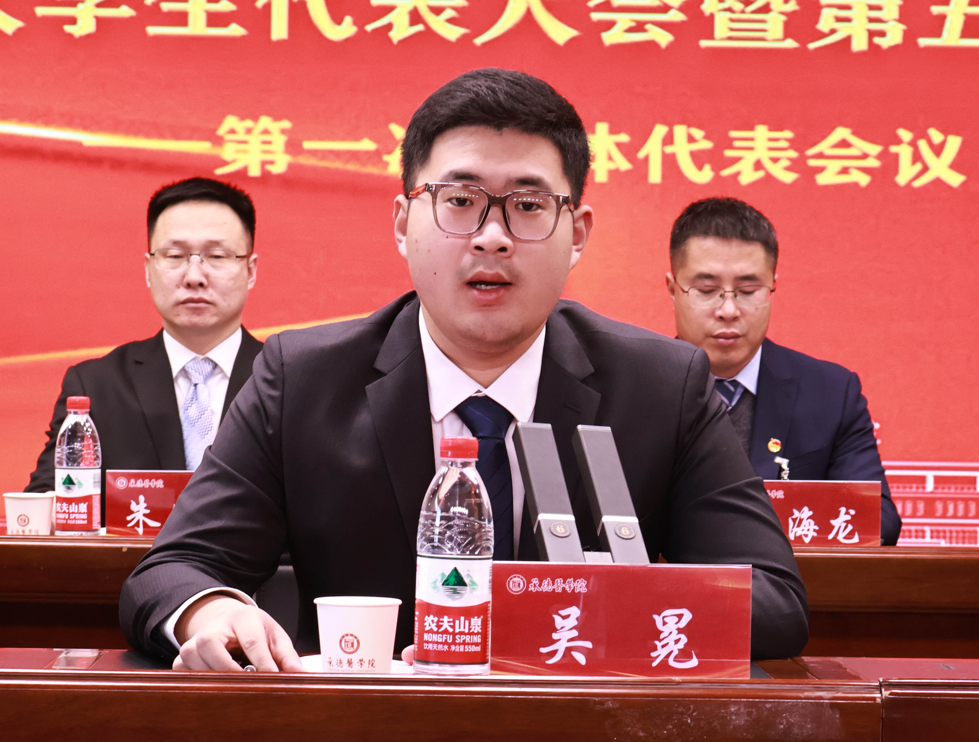 12月14日,我校第六次学生代表大会暨第五次研究生代表大会在图书馆八楼多功能厅召开。学校党委书记唐世英,党委常委、副校长王瑞婷出席会议。河北省学生联合会驻会执行主席吴冕应邀参加开幕式。相关职能部门负责人、各院(系)主管学生工作负责人,校团委全体人员、教师团干部以及134名学生代表参加大会。 开幕式现场 大会在庄严的国歌声中拉开帷幕。唐世英代表我校党委向大会的召开表示祝贺,他表示,过去一年学生会、研究生会扎实推进学业帮扶、权益服务、校园文化等各项工作,取得实实在在的成效。他强调,全体同学要以党的二十届四中全会精神为根本遵循,强化思想政治引领,铸牢政治忠诚之魂,用党的创新理论武装头脑,以坚定信念和实干担当,彰显承医青年的政治本色与时代风采。他希望,全体青年学子要始终遵循“严谨、求实、勤奋、创新”的校训,精研医术、厚植医德,以终身学习深耕医学专业知识;各级学生组织应坚守服务宗旨,聚焦同学急难愁盼的问题,为校园建设建言献策;广大团学骨干要发挥表率作用,进一步凝聚同学力量、提升服务效能,团结带领广大承医青年,在推进中国式现代化的宏阔征程中,书写挺膺担当的青春华章。 校党委书记唐世英致词 王瑞婷致开幕词。她肯定了我校各级团学组织在服务同学、校园建设方面的工作成果,提出了未来工作的方向和设想,她希望各级学生组织以本次学生代表大会为新起点,勇于探索,在守正创新中提质增效,用朝气蓬勃的姿态、求真务实的作风,展现新时代青年学生组织的责任与作为。她寄语承医学子,要以坚定的信念砥砺前行,以扎实的本领书写担当,将个人成长融入学校发展大局与国家复兴伟业,用青春的智慧与汗水,在医学道路上勇攀高峰。 党委常委、副校长王瑞婷致开幕词 吴冕代表河北省学生联合会向我校学生代表大会的隆重召开致以热烈祝贺,并为校学生会、研究生会持续深化改革发展提供方向指引。 省学联驻会主席吴冕致贺词 我校第五届学生会主席团成员史翠樱和第四届研究生会主席团成员李警耀分别代表学生会、研究生会向大会报告工作。大会审议并通过《承德医学院学生会章程(草案)》和《承德医学院研究生会章程(草案)》;集中讨论了大会提案情况报告,为校园建设发展提出切实修改建议。大会选举产生新一届学生常任代表委员会委员和研究生常任代表委员会委员。 全体合影 本次大会为我校学生会、研究生会深化改革注入强劲动力,为学生组织高质量发展锚定方向。站在新的奋斗起点,各级学生组织将牢记初心使命、勇担时代重任,在实干中成长,在开拓中奋进,以昂扬向上的精神风貌为校园建设注入青春活力,为建设有特色有影响的医科大学添砖加瓦,为实现中华民族伟大复兴的中国梦贡献青春力量。 作者:团委 刘桐 艾明鹤(单位审核:夏艳华) 摄影:团委青年媒体中心、校学生会 编辑:党委宣传统战部 张喜子 审核:党委宣传统战部 周文娟 | ||||||||