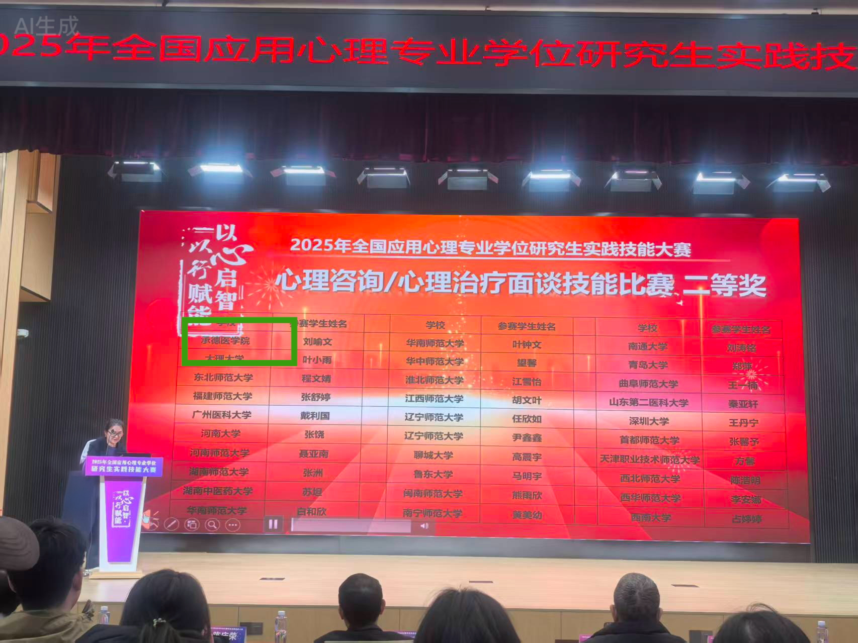 2025年12月7日,全国应用心理专业学位研究生实践技能大赛在华东师范大学举办,我校2023级应用心理硕士研究生刘喻文同学参赛,在“心理咨询/心理治疗面谈技能”赛道凭借扎实的专业积累及出色的咨询面谈能力荣获全国二等奖。 获奖名单 该项赛事是当前国内应用心理专业硕士实践技能比赛中层次最高、规模最大、影响最广的全国性赛事。本届大赛以“以心启智·以行赋能”为主题,共有来自全国146所高校的应用心理专业学位研究生齐聚上海同台竞技,围绕心理咨询/心理治疗面谈技能、应用心理案例开发比赛、心理科普作品创作和应用心理方案/产品设计四个核心实践赛道展开激烈角逐。这是我校应用心理专业继2023年首次斩获该赛事奖项后,再获佳绩,实现赛事成绩的稳步提升。 我校研究生学院、心理学系高度重视本次比赛,广泛动员全体研究生积极参与,邀请专业领导老师担任评委进行校内选拔,并对最终入围决赛作品进行指导与打磨,着力锤炼学生专业实践本领,构建“全员参与、精准指导、精细打磨”的培养模式,实现赛前统筹、赛中打磨、赛后分享交流的机制,持续提升应用心理专业学位研究生的竞赛实力与专业实践能力。 此次参赛,充分彰显了我校心理学专业建设的扎实基础与显著育人成效,有效拓宽了我校应用心理专业学位研究生的应用实践视野,深化了对专业技能临床落地路径的认知,为后续应用心理专业学位研究生培养体系中的应用创新、优化人才培养路径积累了宝贵经验。今后,我校将持续注重研究生在专业应用方面实践技能、宣教能力的培养,促进我校研究生教育的高质量发展。 作者:心理学系 研究生院(单位审核:丁宁) 编辑:党委宣传统战部 张喜子 审核:党委宣传统战部 周文娟 | ||||||||