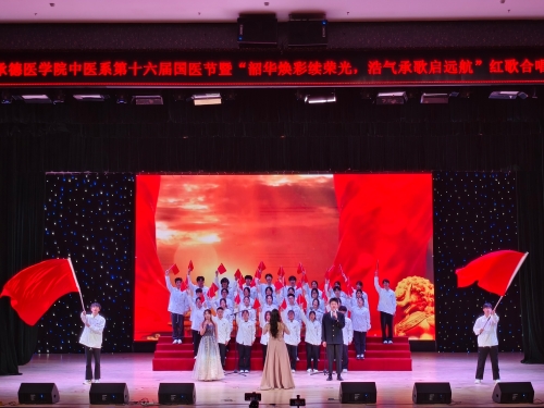 为深入学习习近平新时代中国特色社会主义思想,全面贯彻落实党的二十大精神,赓续中医传统与红色基因,引导青年学生传承红色基因,坚定理想信念,树立正确的世界观、人生观、价值观 ,成长为德智体美劳全面发展的社会主义建设者和接班人,在新时代的浪潮中,以饱满的热情与坚定的信念启航新征程,创造新辉煌 ,中医系于2025年4月24日晚7:00在学校礼堂举办了“韶华焕彩续荣光,浩气承歌启远航”主题红歌合唱比赛暨第十六届国医节闭幕式。 (点击每张照片即可查看原图) 闭幕式现场 现场观众 2023级针灸推拿学1班演唱《团结就是力量》 2023级针灸推拿学2班演唱《精忠报国》 岐黄焕彩承国粹,红歌嘹亮颂党恩。本次红歌比赛在舞者们罗裙轻旋、指尖捻花影、衣袂拂流光的曼妙舞姿中拉开帷幕。开场表演舞蹈《繁花》为活动勾勒出灵动的序章。《歌唱祖国》《保卫黄河》《我爱你中国》等一首首经典红歌承载着革命先烈的英勇事迹,歌颂着中华民族不屈不挠的斗争精神,描绘中华民族穿越荆棘的坚韧底色,唱响国家百折不挠的理想之光。大家用最真挚的情感、最嘹亮的歌声,把红歌唱出了风采,唱出了对党的热爱、对祖国的祝福。 2023级中医康复学1班演唱《歌唱祖国》 2023级中西医临床医学1班演唱《红旗飘飘》 2023级中西医临床医学2班演唱《没有共产党就没有新中国》 2023级中医学1班演唱《保卫黄河》 2023级中医学2班演唱《祖国颂》 中医系第十六届国医节为期近两个月,开展了“太极雅韵绘五育,青春风采绽华章”太极拳比赛暨第十六届国医节开幕式、“杏林雅舍,医脉相承”宿舍文化展示比赛、“积先贤之学,沐杏林之风”书法大赛、“情系承医八十载,爱满杏林谱新篇”80周年校庆“我爱承医”作品征集大赛、“趣味竞技展风采,凝心聚力向未来”趣味运动会、“义诊满心田,真情暖校园”爱心义诊活动和“韶华焕彩续荣光,浩气承歌启远航”红歌合唱比赛暨第十六届国医节闭幕式等七场系列活动,累计1351人次参加,颁发班级奖项21个,个人奖项30余人次。 2024级针灸推拿学1班演唱《我和我的祖国》 2024级针灸推拿学2班演唱《明天会更好》 2024级中西医临床医学1班演唱《如愿》 2024级中西医临床医学2班演唱《我们都是追梦人》 通过本次国医节系列活动,中医系希望每一位中医学子以“红色基因”铸魂,以“岐黄仁术”修身,做有理想、有本领、有担当的中医药传承者,在推进强国建设、实现民族复兴的伟业中贡献青春力量,彰显青春风采,奋力书写出中国式现代化挺膺担当的青春篇章。 2024级中医康复学1班演唱《我爱你中国》 2024级中医学1班演唱《少年中国说》 2024级中医学2班演唱《天龙地鳞》 舞蹈表演《我最红》 闭幕式合影 作者:张靖宜 王歆怡 于义焘 编辑:党委宣传统战部 范萌 审核:党委宣传统战部 王海民 | ||||||||