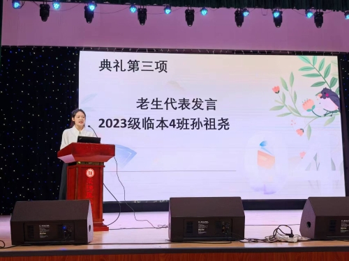 为引导学生明确医学使命,锚定医学方向,2025年9月7日,基础医学院2025级新生开学典礼在学校会堂隆重举行。学院党委书记吴杰、党委副书记、院长肖丽君、党委副书记齐菲、副院长高亚贤、副院长谢广成出席典礼,典礼由副院长谢广成主持,学院领导、师生代表与基础医学院 2025级新生学子共计 1000 余人齐聚一堂,共同见证这一开启医学逐梦新征程的重要时刻。 典礼在庄严的国歌声中拉开帷幕。全体师生肃立致敬,激昂的旋律伴随着歌声,振奋着每一位新生的心灵,展现出对祖国的赤诚与敬意,也标志着他们正式踏入医学殿堂,开启人生新的篇章。 (点击每张图片即可查看原图) 全体人员肃立奏唱国歌 学院党委书记吴杰致欢迎辞。她围绕医学生的重任与使命,强调选择医学就是选择了责任与担当。她将“深耕”“打开”“坚韧”三个关键词作为“启程礼物”赠予新生,勉励大家以专注为阶脚踏实地,以开放心态拥抱变革,以初心为灯直面迷茫。奠定基石、拥抱未来、守护初心。 吴杰致欢迎辞 教师代表龚明玉老师结合自身经历,以“追求真理、守护生命”为主题发言,向新生提出四点建议:永葆初心,笃行学业,严于律己,恪守誓言。她分享了“有时去治愈,常常去帮助,总是去安慰”的箴言传递医学的人文温度,引发新生共鸣。 教师代表龚明玉发言 2023级临本4班的孙祖尧作为在校生代表发言。她分享了从高中到大学的平稳过渡经验。她指出医学学习的本质是“从为自己考分转变为生命负责”,并呼吁新生并肩前行,成长为”有温度、有深度、有担当的医学人“。 在校生代表孙祖尧发言 院长肖丽君以“启航医学之路、铸牢卓越基石”为题,从“初识铭志、求索殿堂、明道厚基、修身笃行”四个维度,为新生详细介绍了学院的使命、优势、学习路径和支持体系。 肖丽君做专题讲座 典礼的高潮是庄严的医学生宣誓仪式。在新生代表王馨仝的领誓下,全体新生高举右拳,铿锵诵读《医学生誓词》。“健康所系,性命相托”的誓言在会场回荡,彰显了新一代医学生的责任与担当,定格下他们立志报国、守护生命的坚定瞬间。 全体人员宣誓 典礼在副院长谢广成的闭幕辞中圆满落幕。此次活动不仅是一场欢迎仪式,更是一次清晰的成长导航和厚重的精神嘱托,激励2025级新生以初心为舵、以笃行为帆,在医学道路上砥砺奋进,为守护人民健康、推动医学发展注入新一代的青春力量。 作者:基础医学院 编辑:党委宣传统战部 张喜子 审核:党委宣传统战部 周文娟 | ||||||||