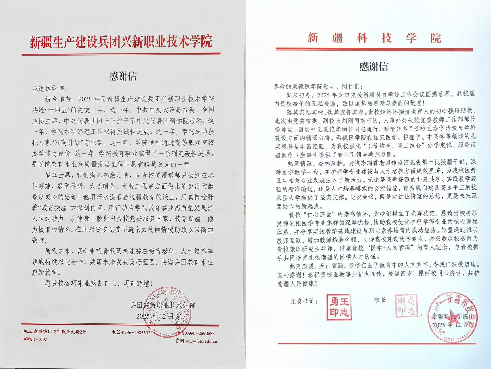 | 两封感谢信寄深情 承德医学院援疆教师获高度赞誉 | ||||||||