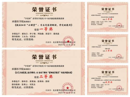 | 我校学生作品在“学堂杯”高等医学院校AI+知识融创微课挑战赛中荣获佳绩 | ||||||||